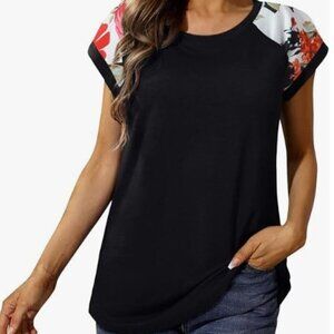 Fashion Features: Crew neck, short sleeve, Floral Print Sleeve. Curved hem