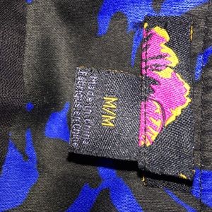 Eye-catching floral design in blue and black. Strapless with back zip and side boning. Faux crisscrossing at the chest area.