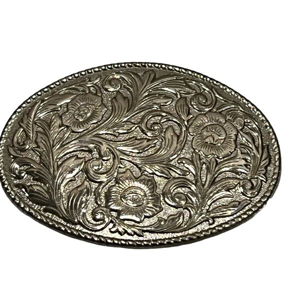 FLORAL ornate silver Swirl belt buckle women’s Western oval