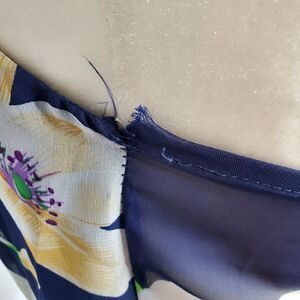 Floral summer dress with adjustable straps. This dress needs a little work which is why it is in my sale section. The seams under the arms need some restitching. There is also some residue from double sided tape on the bust. If you just cover it with your own tape it would not be noticed. Great summery dress!