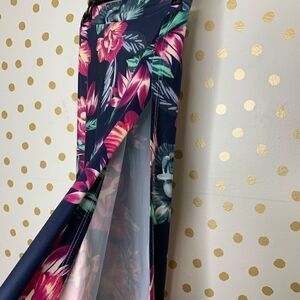 FLORAL Hibiscus Hawaiian High Slit Maxi Skirt S