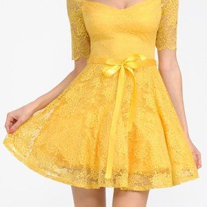 Floral-Lace Strapless Mini Dress