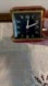 Elegant FLORE travel clock with a gold frame and red case. Features a black face with white numerals.
