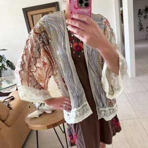 FLOREAT Anthropologie Tunic / Coverup / Kimono Style Floral Rayon Blend Size S