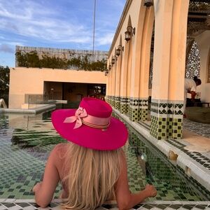 Detail: Satin Pink Ribbon + Gold rope as hatband