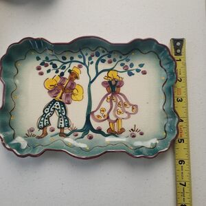 FLORENCITA CALIFORNIA POTTERY PLATTER Approx 8.5"×6" Handpainted Signed JD. Condition is Used. There are a couple of minor chips as pictured.