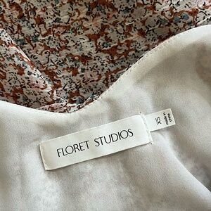 FLORET STUDIOS | Cold Shoulder Asymmetric Ruffle Dress In Rust-Cream | Size XS