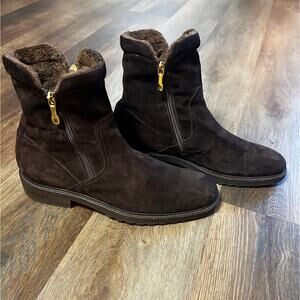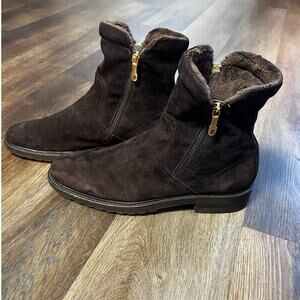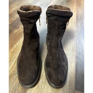 FLORIAN'S HAND MADE IN ITALY BROWN MENS SUEDE FUR LINED BOOTS