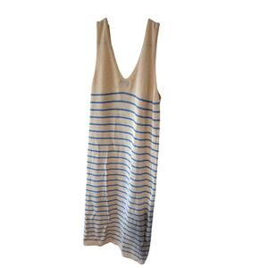 FLORIS Crochet Dress M/L Sleeveless Knee Length Lagenlook Made in Italy Blue