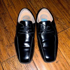 The Florsheim Reveal Bike Toe Oxford, Jr. has an updated, classic design that hides features like its easy-on, easy-off, no tie elastic laces. Looks, comfort, convenience, and durability combine in a shoe that has everything a young man could desire and everything a parent demands. Smooth leather upper Leather linings for added breathability Fully cushioned Memory Foam footbed with a leather cover for all-day comfort Durable rubber sole Worn one time for a wedding. No scuffs. Slight crease is the only sign they’ve been worn.