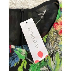 FLORYDAY Butterfly Floral Sheer Modest Dreamy Midi Dress NWT Size XL