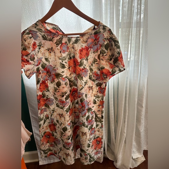 Multi colored flower dress with cute ruffle like short sleeves… it is missing the button for the back clasp.. super cute