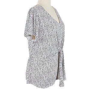 Flower & Feather Black & White Polka Dot V-Neck Tie-Front Top, Size 2X