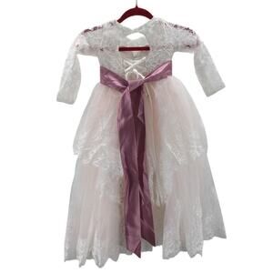 FLOWER GIRL PARTY DRESS Z 4-5 Y white pink mauve lace beaded wedding NEW B40