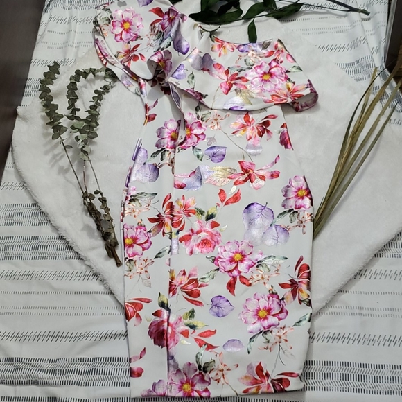 🌟ONE SHOULDER RUFFLE FITTED MIDI DRESS🌟 ⭐BRAND NEW NEVER WORN⭐