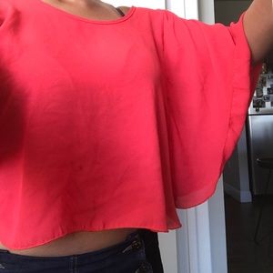 Really cute flowy crop top - orangey reddish! great material for a hot summer day too! It's a size small but it fits like a medium. Unless you like it loose you could totally pull it off if you are a small :) great condition. Just have too much clothes and need to empty the closet :(