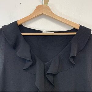 FLS Apparel Womans Black Top 3X Ruffle V Neckline