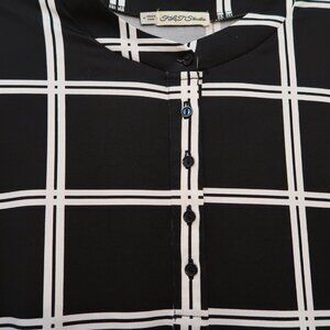 FLT Studio Black & White Plaid Long Sleeve Top Size Medium