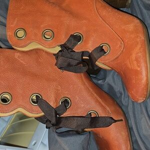 FLUEVOG Sopranos ROBYN Rusty Orange Heeled Boots with Ribbon Laces