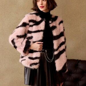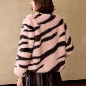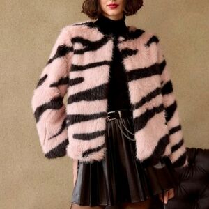 FLUFFY ZEBRA STRIPED PATTERN COAT