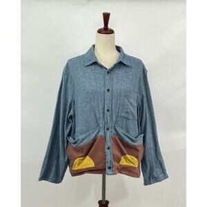 FLUX BENE OS S M Blue Sketchbook Jacket Cotton Corduroy Flannel Top Shacket Fall