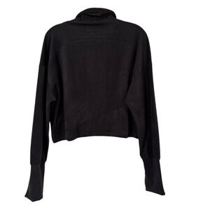 FLX Cropped Microfleece Top Raglan Sleeve Black Thumbholes Stretch Lounge Medium