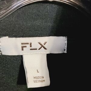 Perfect zip-up sweatshirt to throw on after a workout or for running errands! Women's green Midnight Flow quarter zip-up pullover sweatshirt by FLX, size large. Hidden zipper on arm to stash money, ID or keys. Cotton and spandex fabric blend. Sweatshirt is new with tags; no flaws.