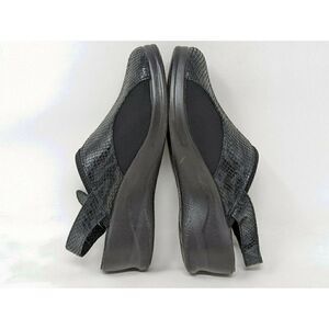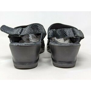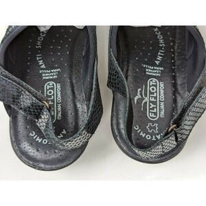 FLY FLOT SANDALS BLACK LEATHER SNAKESKIN BACK STRAP WOMENS SIZE US 6.5 EU 38