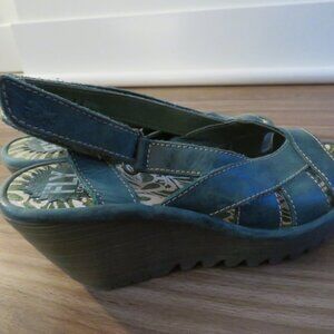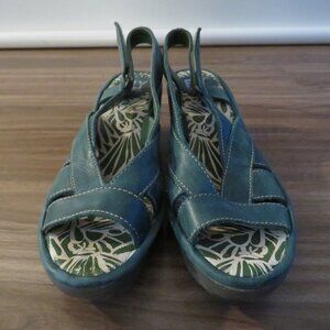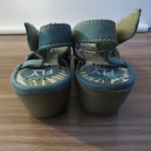 FLY LONDON Leather Yisa Wedge Sandals in Forest Green Sz US 6-6.5 / EU 38
