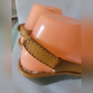 FLY LONDON 2-1/2" wedge heel mustard leather sandals (sz US 7 or Euro 38). The sandals have a hook and loop closure at the heels. The sandals are in great condition. Please see all pictures.