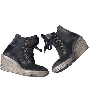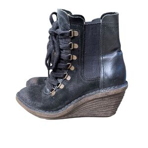 FLY LONDON SUZU BLACK OIL SUEDE SLIP ON WEDGE BOOTS EUR 37 USA 6
