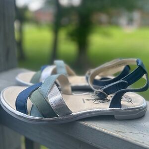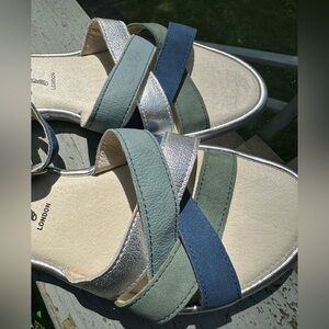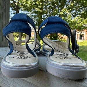 FLY LONDON Sz 40 Cune 65Fly Leather Multi Ankle Strap Sandals Blue Jade Silver
