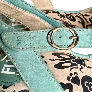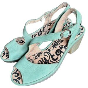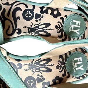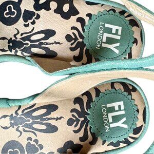 FLY LONDON Willow Nubuck Suede Heeled Sandals - Sea Green - EU 39 (8.5)