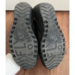 FLY LONDON Yala Black Leather Peep Toe Wedge Ankle Strap Sandals Shoes