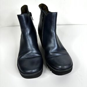 FLY LONDON Yoss Chelsea Boot Blue Metallic Wedge Bootie Womens Shoe Size 36