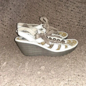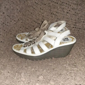 FLY LONDON-Yito-White Leather Gladiator-Ghillie Wedge Sandal-Sz 38-Near Mint