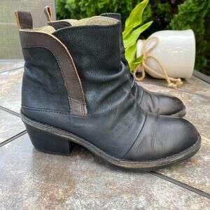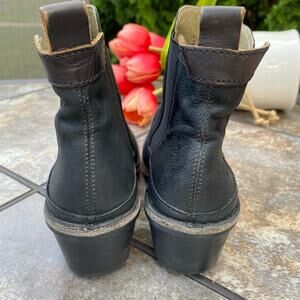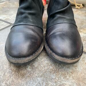FLY London Black Antiqued Leather Slouchy Ankle Heeled Booties Motorcycle Sz 6
