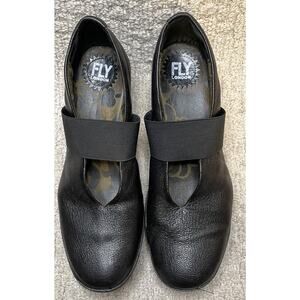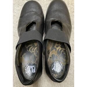 FLY London Black Leather Yale Shoes 41 US 10 Mary Janes Wedge