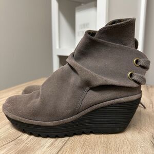 Fly London "YAMA" Suede Wedge Ankle Boots - Grey Gray Womens (EU 37 / US 6.5-7)