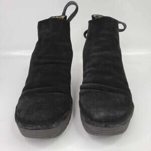 FLY London Boots Yama Yebi Suede Ruched Ankle Black Women's Size 8 Wedge Bootie