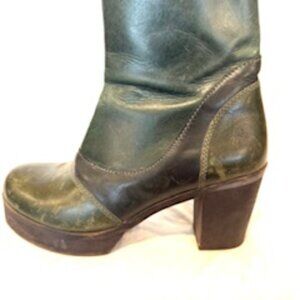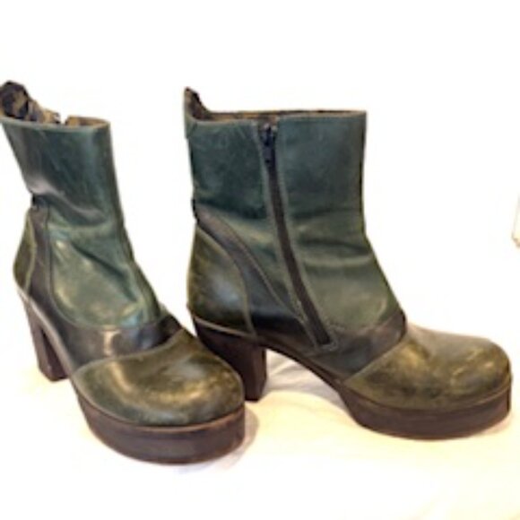 Groovy dark green ankle boots from FLY London. Top quality leather and craftsmanship, great condition (light scuffing is part of style) Heel 3" (2 1/4" net height)