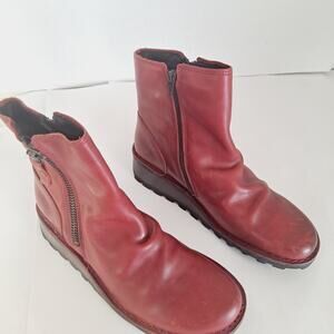FLY London MON 944FLY Red Wine Rug Leather Zips Ankle Boot Wedge US 10 EU 41 NEW