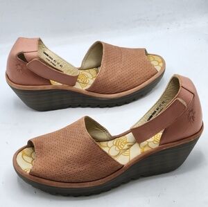 FLY London Perforated Leather Wedge Sandals In Pink and Grey Style Yake Size 10