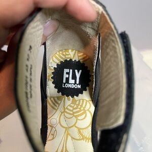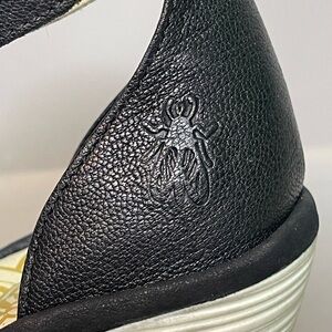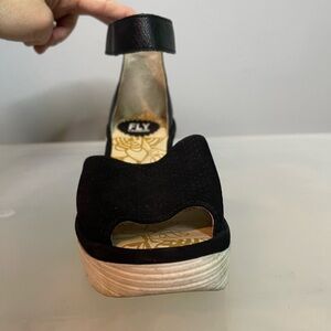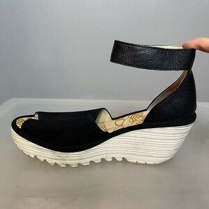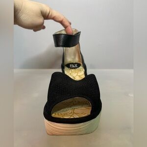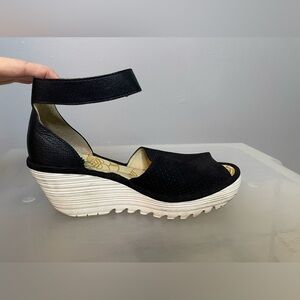 FLY London Perforated Leather Wedge Sandals Yake Black Nubuck 38 US 7.5