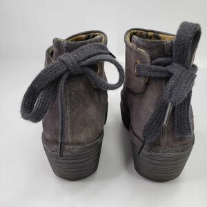 FLY London Suede Ruched Ankle Boots with Tie Detail Gray Women's Size 8 Wedge