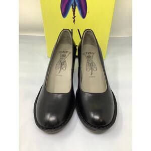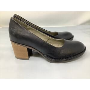 FLY London Women's 39/8.5 Black Leather Bery104fly Dress Shoes Block Heel BR18-8