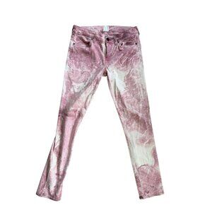 FLYING MONKEY Red White Swirl Dyed Denim Skinny Jeans Size 29