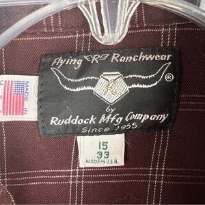 FLYING R RANCHWEAR BY RUDDOCK MFG CO. MADE IN USA. Size 15/33. Brown/White