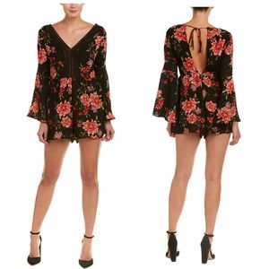 FLYING TOMATO Black Floral Bell Sleeve V Neck Romper SMALL Open Back NWT Boho
