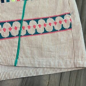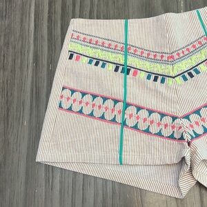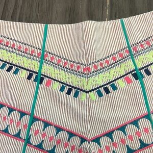 Boho striped mini shorts with embroidery size large but fits medium-see measurements. Flying Tomato brand. 100% cotton. Please see all pics and measurements and comment below with any questions